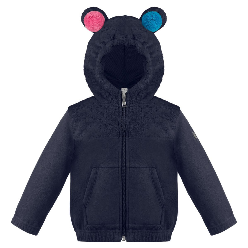 Dievčenská mikina, do ktorej sa ihneď zamilujete! Mikina je v tmavo modrej farbe a je ozvláštnená jemným kožúškom v oblasti kapucne a ramien. Kapucňa je tiež doplnená farebnými brmbolcami, ktoré znázorňujú ušká. Zvyšok mikiny je z príjemného fleecového materiálu, ktorý poskytuje tepelný komfort.