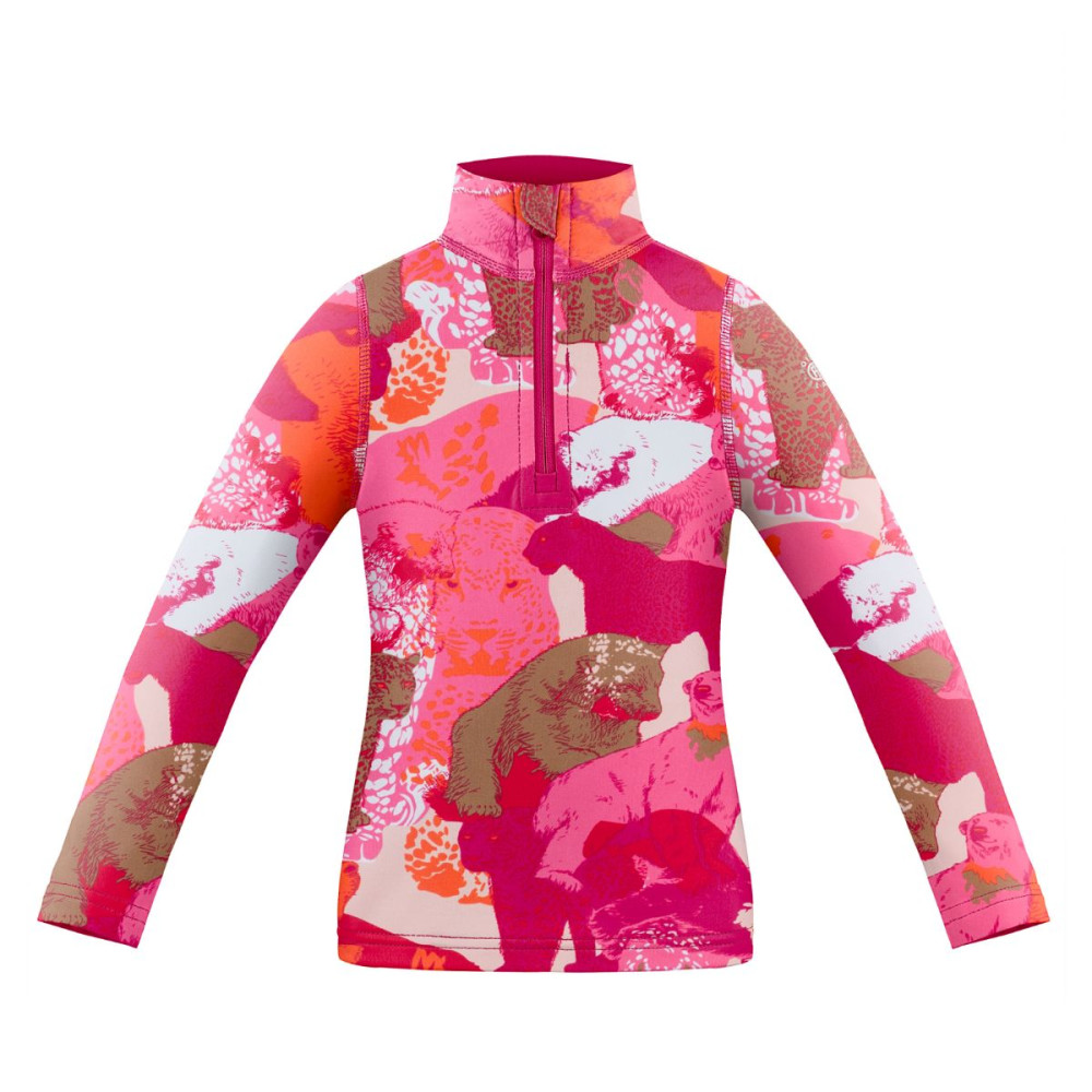 Mikina, ktorá rozžiari každý lyžiarsky komplet. Na prvý pohľad najviac zaujme ojedinelý motív, v ktorej sa striedajú ľadové medvede a gepardy. Mikina je z tenšieho materiálu a na vnútornej strane je jemný fleece, ktorý je veľmi príjemný na dotyk a poskytuje tepelný komfort. Vďaka elastickému materiálu sa mikina krásne prispôsobí postave.