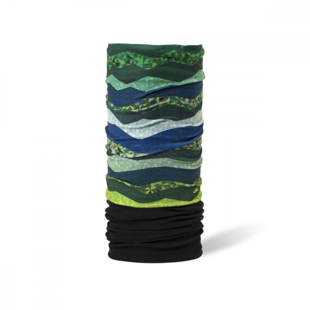 Multifunkčný nákrčník pre malé lyžiarky. Strakatý dizajn je doplnený názvom značky. Zaujme zaiste aj funkčne - nákrčník je čiastočne podšitý fleecom - spodná polovica tak príjemne hreje, horná je naopak priedušná.
