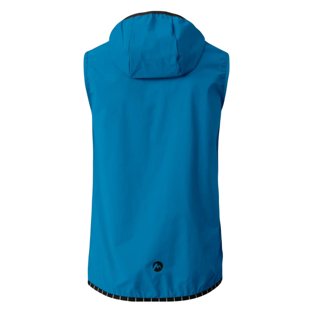Zadný diel vesty tvorí priedušný a pružný materiál, ktorý sa rýchlo prispôsobí pohybu, odvádza vlhkosť a rýchlo schne. Vďaka elastickému zakončeniu kapucne, prieramkov a spodného lemu, vesta perfektne sedí na tele bez obmedzenia. Nechýbajú dve bočné vrecká a náprsné vrecko na zips, ktoré ponúkajú dostatok priestoru na nevyhnutnosti pri každej túre.