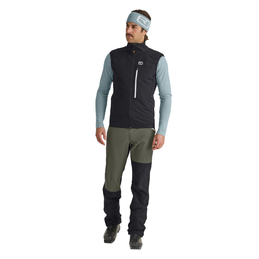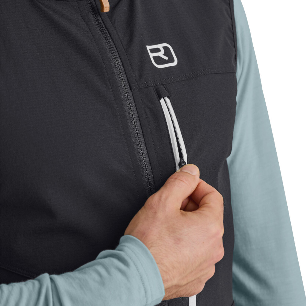 Vďaka odolnému materiálu Merino Airsolation, ktorý je vysoko priedušný, vetru a vodeodolný, vás vesta spoľahlivo ochráni pred nepriazňou počasia bez toho, aby vás akokoľvek obmedzovala v pohybe. Merino vlna na vnútornej strane príjemne hreje a reguluje telesnú vlhkosť, takže sa budete cítiť pohodlne za všetkých okolností. Dvojvrstvový golier vám poskytne dodatočnú ochranu pred vetrom, zatiaľ čo náprsné vrecko so sieťovanou podšívkou je ideálne na uloženie drobností a zároveň slúži na odvetrávanie.