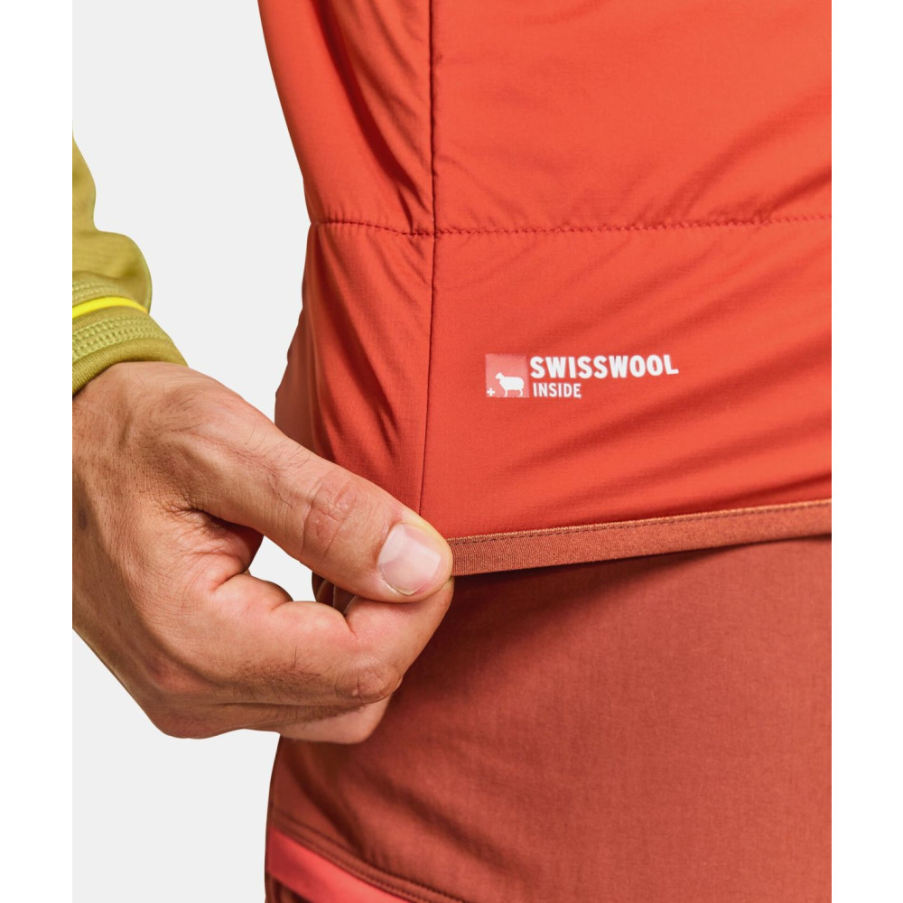 Vonkajší materiál TEC STRETCH je priedušný a odolá vetru aj vode. Izolačná podšívka z prémiovej švajčiarskej vlny SWISSWOOL s gramážou iba 70 g/m² vás spoľahlivo zahreje aj v mrazivých podmienkach. Rukávy sú vybavené elastickým lemovaním, vďaka ktorému pohodlne priľnú. A keď ju práve nepotrebujete, jednoducho ju zbalíte do náprsného vrecka.