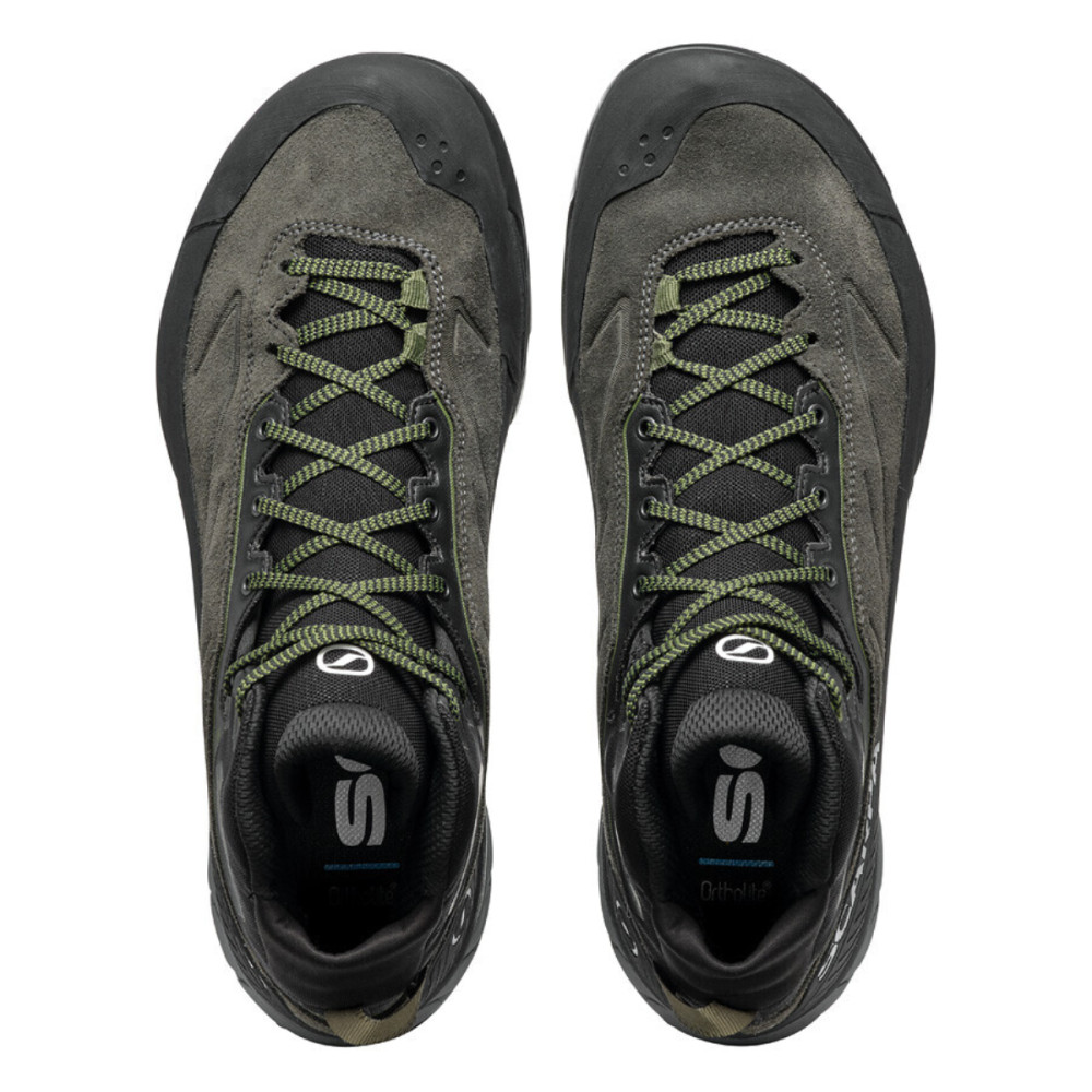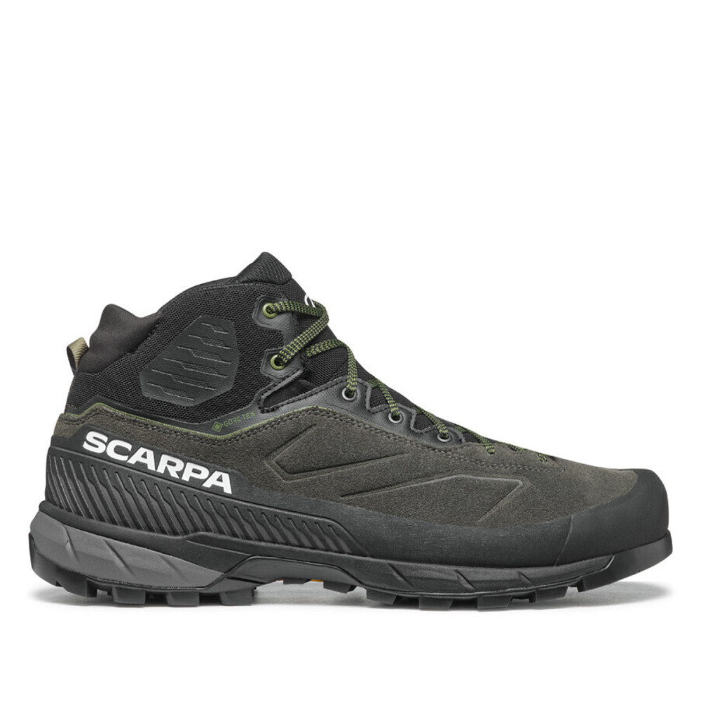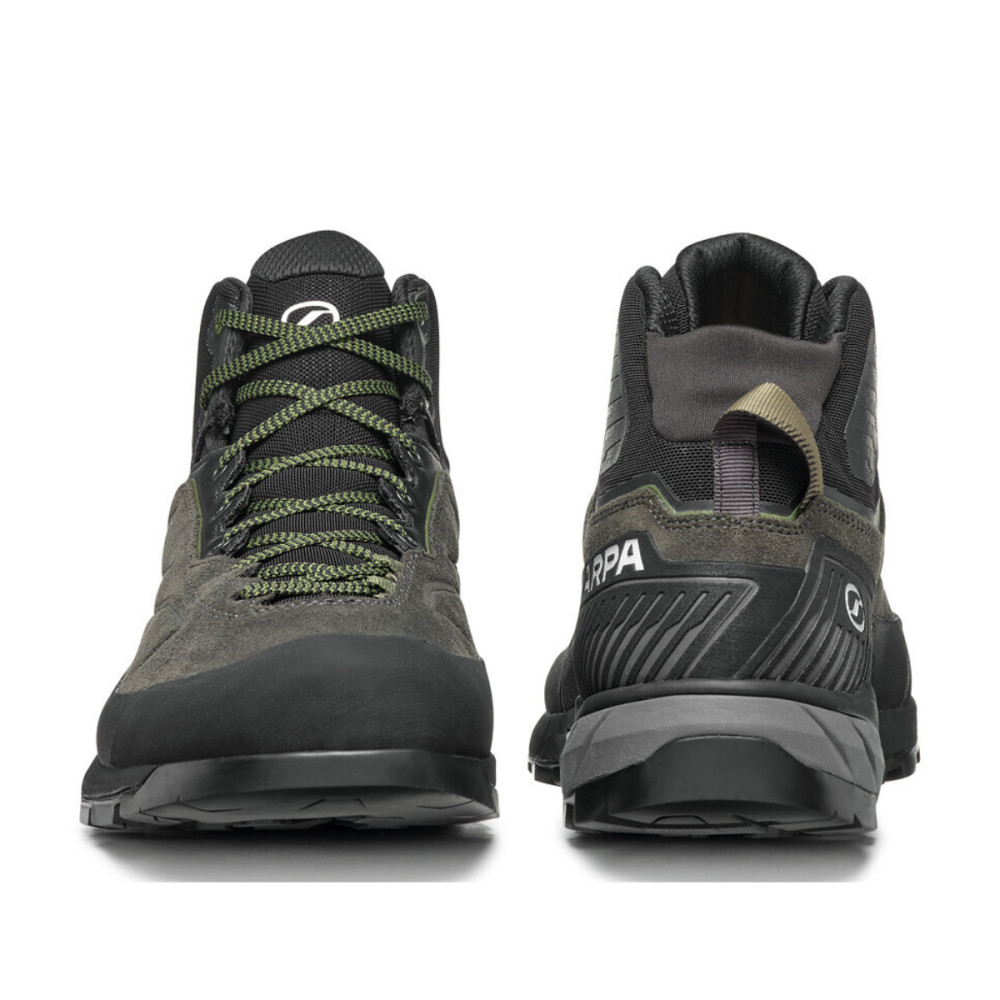 SCARPA RAPID XT MID GTX sú kožené topánky s vyšším strihom, ktorý poskytuje stabilnú oporu členku – ideálny pri nástupoch na ferraty, alebo pri pohybe v členitom teréne na horských chodníkoch. Celoplošná TPU obsádzka a gumová špička chráni topánku pred oderom a mechanickým poškodením, zatiaľ čo membrána GORE-TEX® ePE zaisťuje vodeodolnosť a priedušnosť s menším dopadom na životné prostredie.