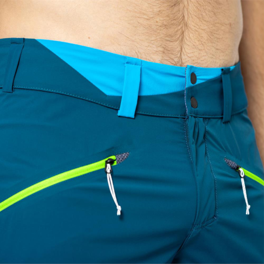 Pánske kraťasy Crazy Resolution prinášajú nielen originálny vzhľad, ale predovšetkým funkčnosť. Sú vyrobené z odolného materiálu Endurance Light, ktorý zaisťuje dlhú životnosť a pružnosť pri každom kroku. Ultra plochý pás s gombíkmi na cvoky poskytuje stabilitu a pohodlie aj pri náročných aktivitách. Vďaka pútkom na opasok je možné prispôsobiť kraťasy individuálnym potrebám. Laserom rezané bočné vrecká a stehenné vrecko so zipsom umožňujú bezpečné uloženie drobností, zatiaľ čo podlepené lemy zvyšujú celkovú odolnosť. Reflexné logá zvyšujú viditeľnosť aj za šera či tmy.