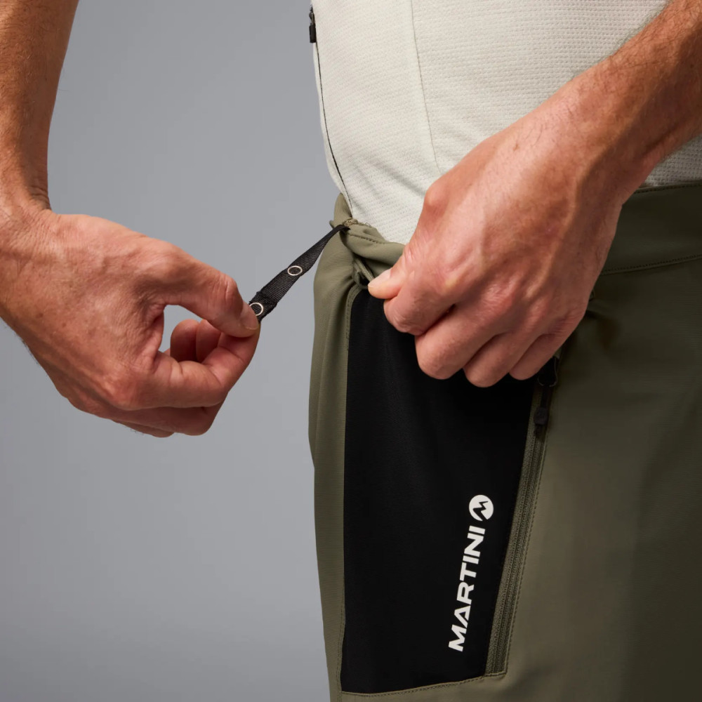 Vyrobené sú z technického materiálu zo 79% recyklovaného polyamidu, ktorý je ľahký, rýchloschnúci a výborne odvádza vlhkosť. Vďaka prímesi elastanu sú navyše veľmi pružné, takže vás nijako neobmedzia pri stúpaní, alebo pri zjazde. Vybavené sú zapínaním na cvok a zips, pútkami na opasok, dvoma vreckami na zips a reflexným logom Martini pre lepšiu viditeľnosť za zhoršených svetelných podmienok.