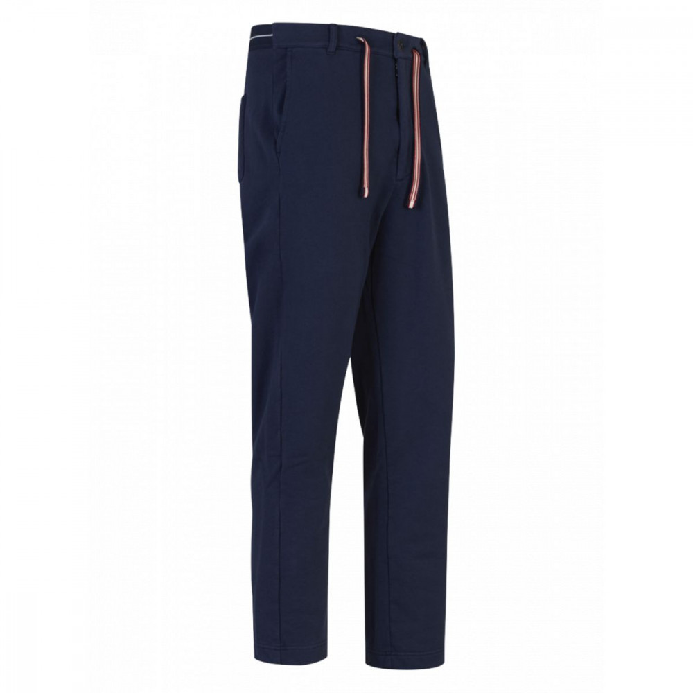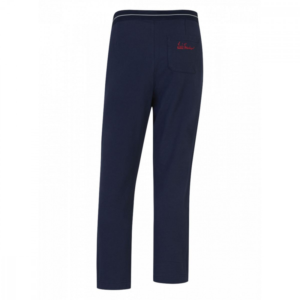 Tmavomodrý design doplňuje červený nápis Luis Trenker na zadnom vrecku. Nohavice majú zapínanie na gombík a zips a na páse je možné stiahnutie a sú tam aj pútka na pások. Nohavice majú rovný strih.