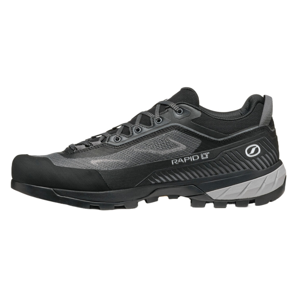 Scarpa Rapid LT je obuv, ktorá vyniká odolným zvrškom z technickej tkaniny Jacquard a celoplošnou obsádzkou vrátane zosilnenia v oblasti palca, čo zaisťuje maximálnu ochranu pri pohybe v náročnom teréne. Jazyk aj lem okolo členku sú vyrobené z mäkkého omšového materiálu, ktorý zvyšuje komfort pri nosení. Technológia EXOskeleton na topánky poskytuje bočné spevnenie a stabilitu, čo oceníte pri každom kroku na traile, pri prístupe k skalám aj pri ľahkej turistike. Podrážka Vibram® MegaGrip s lezeckými zónami v špičke a brzdným systémom v päte zaisťuje vynikajúcu priľnavosť a stabilitu na rôznych povrchoch.
