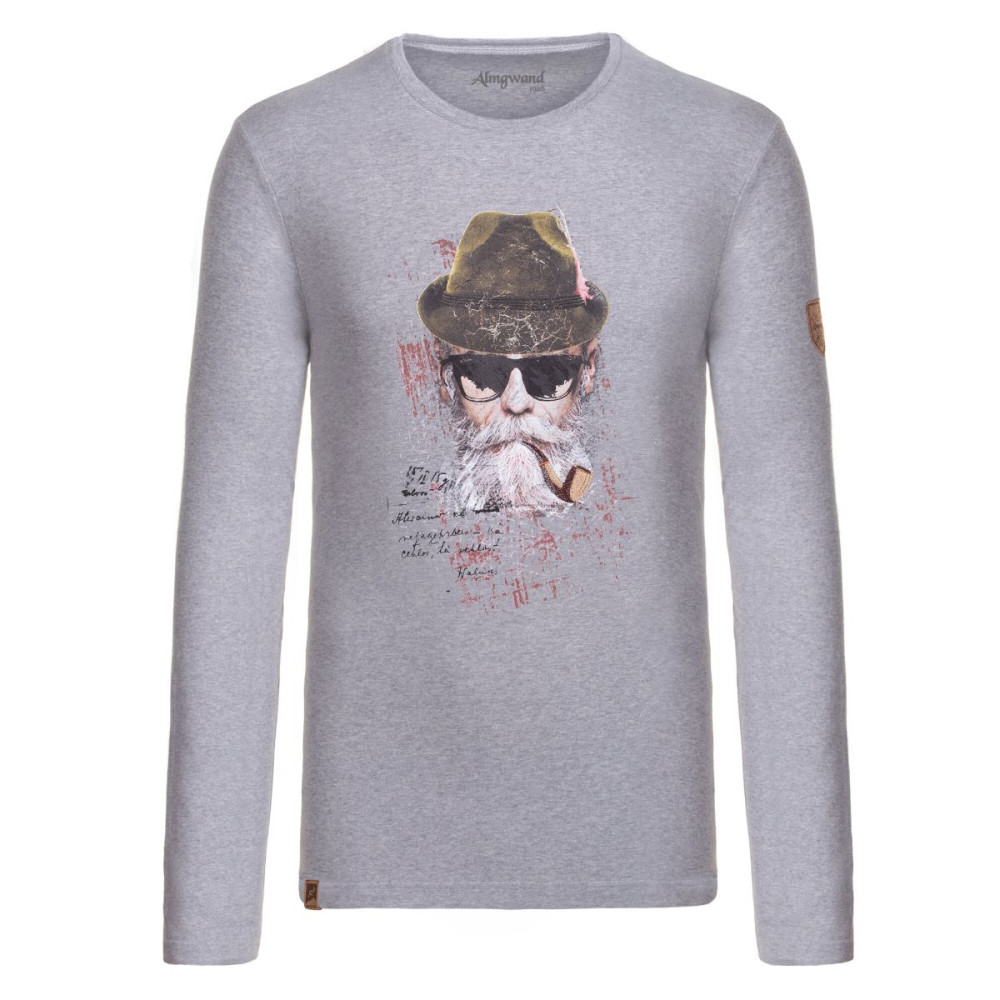 Pánske tričko Almgwand, s ktorým vždy zažiarite! Na hrudníku je motív snehového borca s klobúkom, okuliarmi a vyšívanou fajkou. Vďaka príjemnému materiálu si ho obľúbite na každodenné nosenie. Na ramene je nášivka v tvare erbu s logom značky.