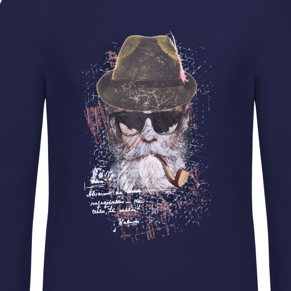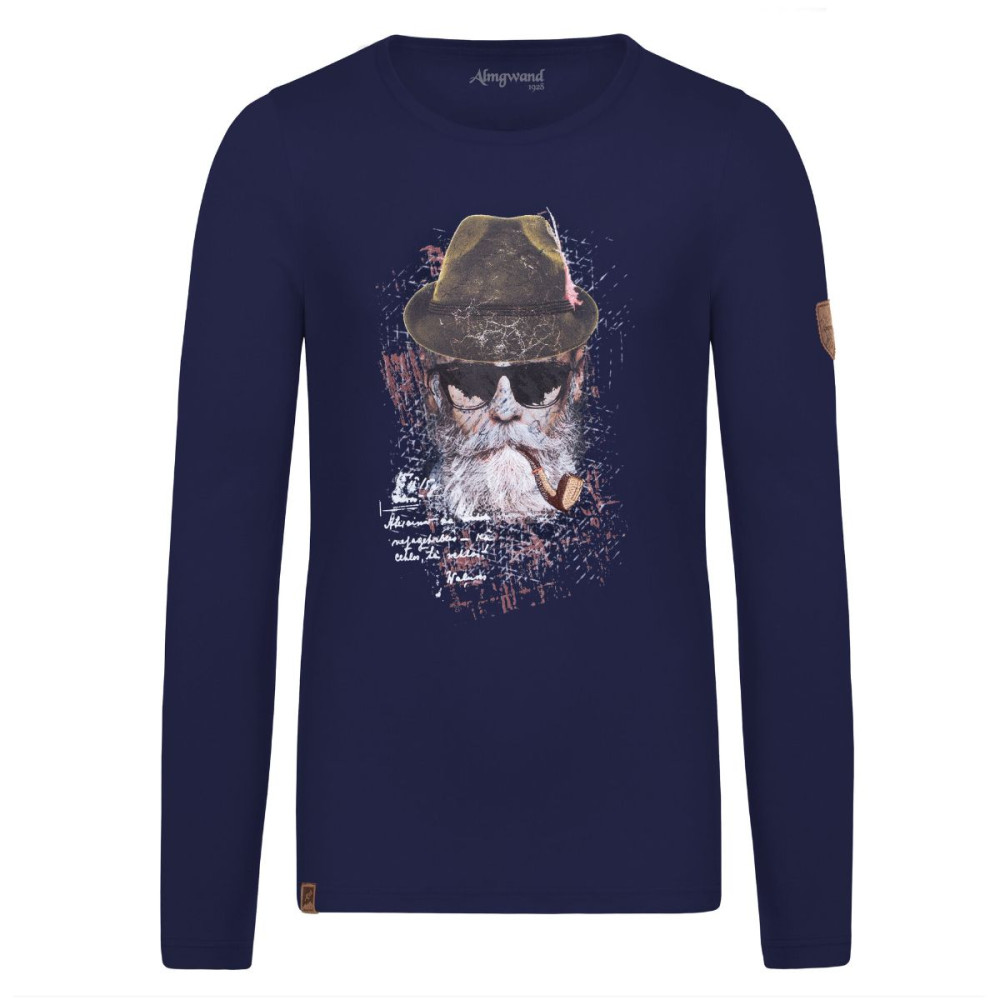 Pánske tričko Almgwand, s ktorým vždy zažiarite! Na hrudníku je motív snehového borca s klobúkom, okuliarmi a vyšívanou fajkou. Vďaka príjemnému materiálu si ho obľúbite na každodenné nosenie. Na ramene je nášivka v tvare erbu s logom značky.