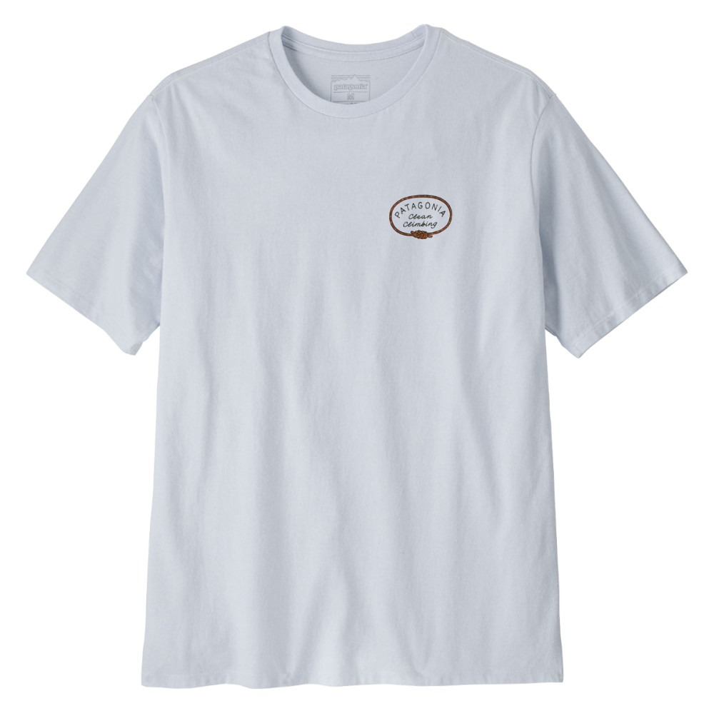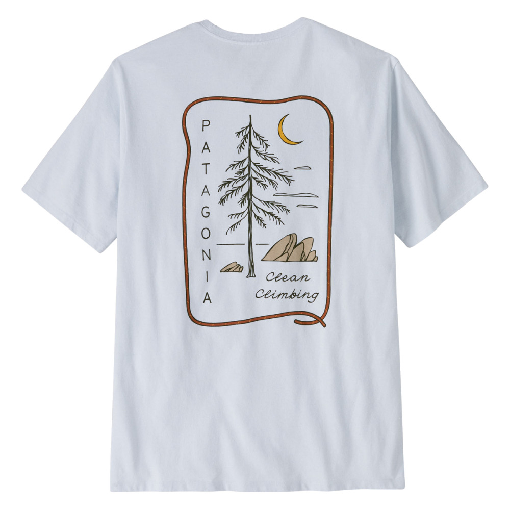 Pánske tričko Patagonia Clean Climb Roots Responsibili-Tee nesie grafiku inšpirovanú rokom 1972, kedy Yvon Chouinard zmenil smer vývoja horolezeckého vybavenia po zistení, ako veľmi skaly poškodzujú skoby. Motív „Clean Climbing Roots“ odkazuje na túto filozofiu a je vytlačený na tričko vyrobené zo 100% recyklovaných materiálov.
