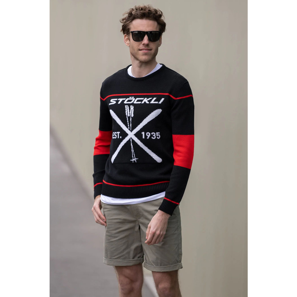 Objavte jedinečný štýl a neprekonateľný komfort s pánskym svetrom Stöckli STÖCKLI 1935. Použitá 100% merino vlna je známa svojou mäkkosťou, pružnosťou a výnimočnou schopnosťou regulovať teplotu. Vďaka tomu vám bude v tomto svetri pohodlne počas chladnejších dní. Retro motív s lyžami na hrudníku pridáva na unikátnosti a zvýrazňuje vašu vášeň pre zimné športy.